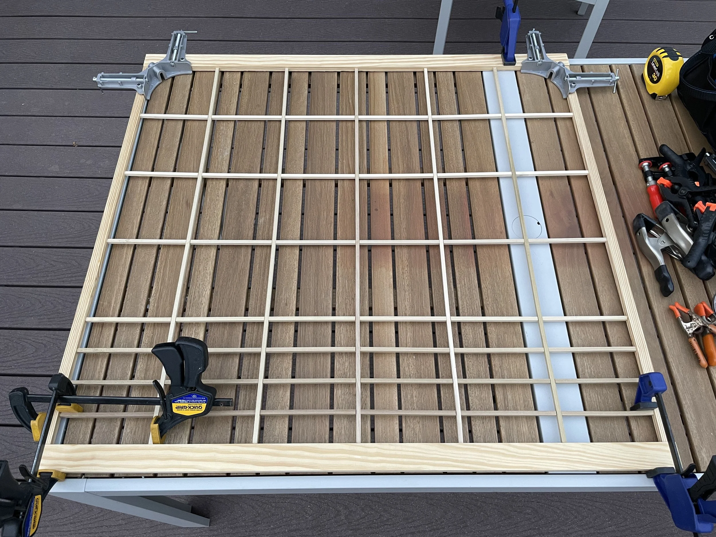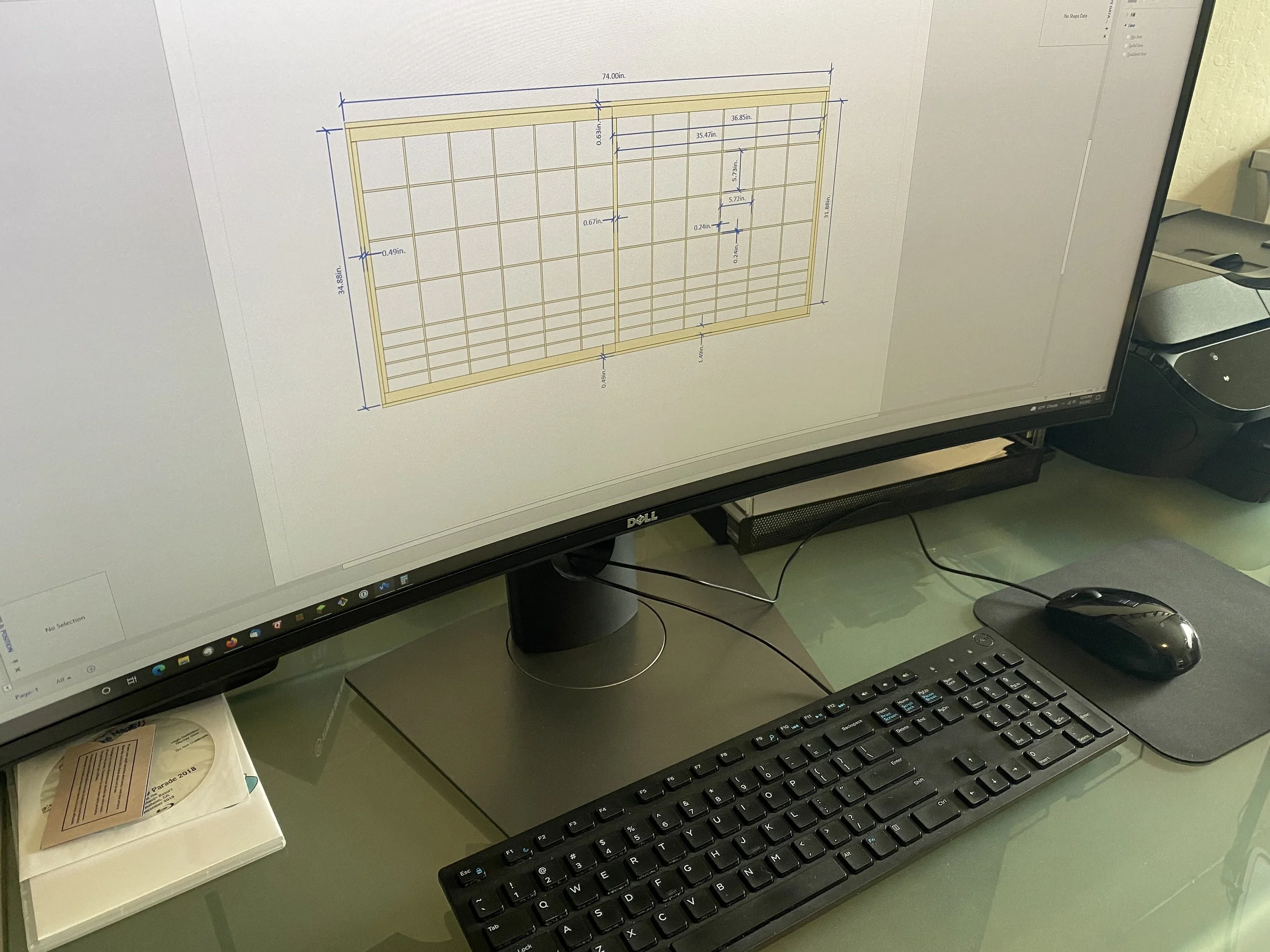 まずは窓の大きさに合わせてデザイン。本物の障子をほとんど見たことないので、オンラインで調べたりしながら。