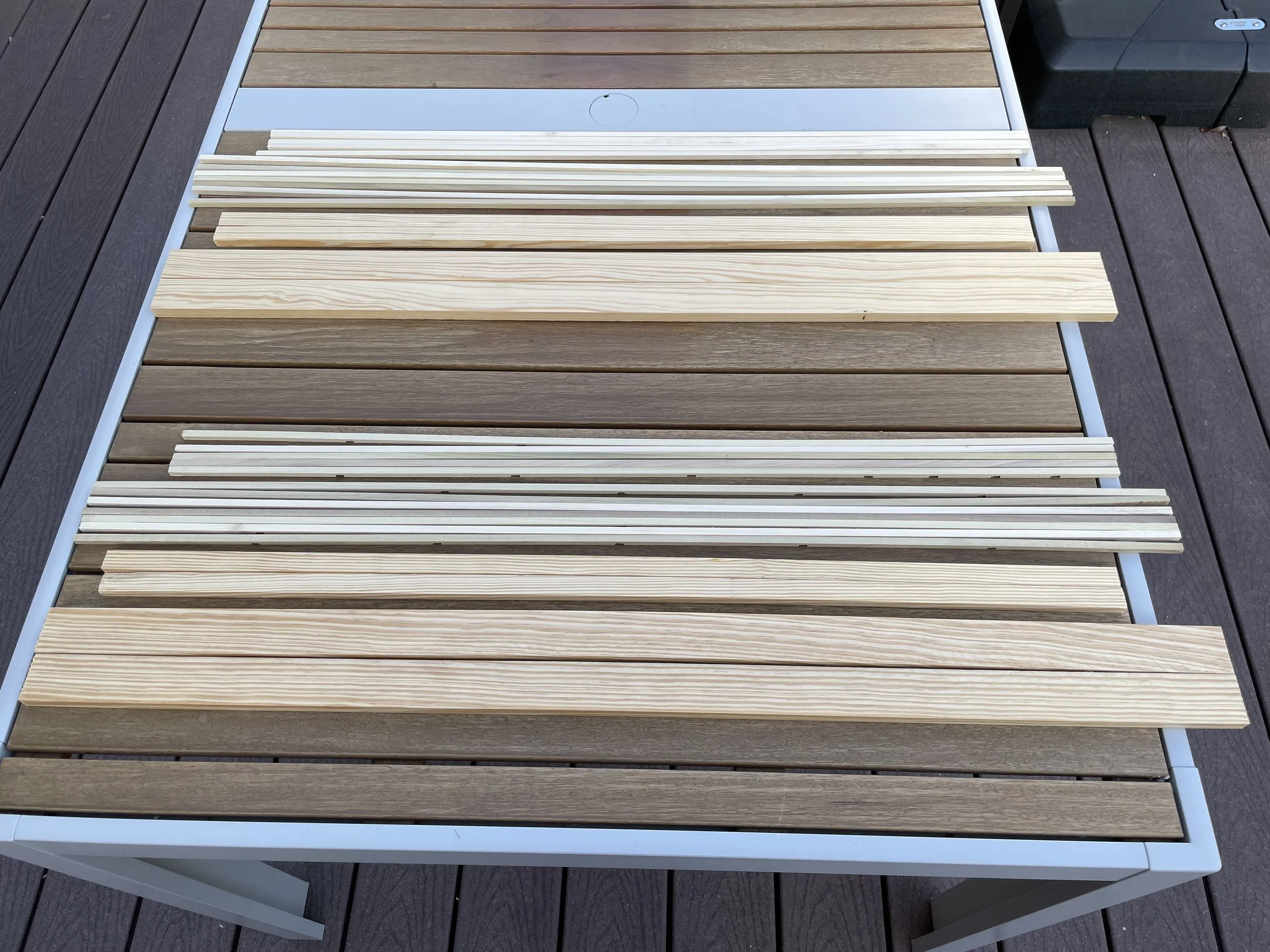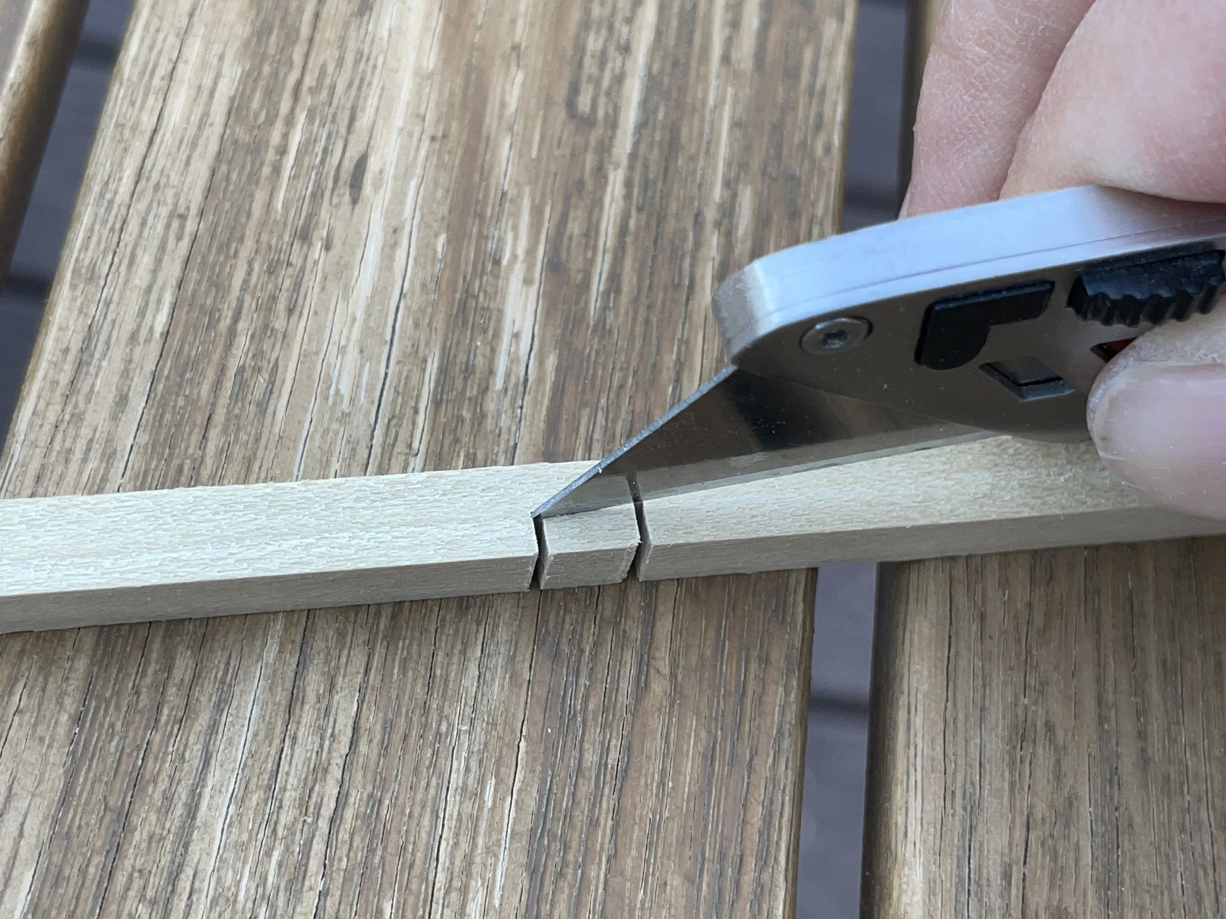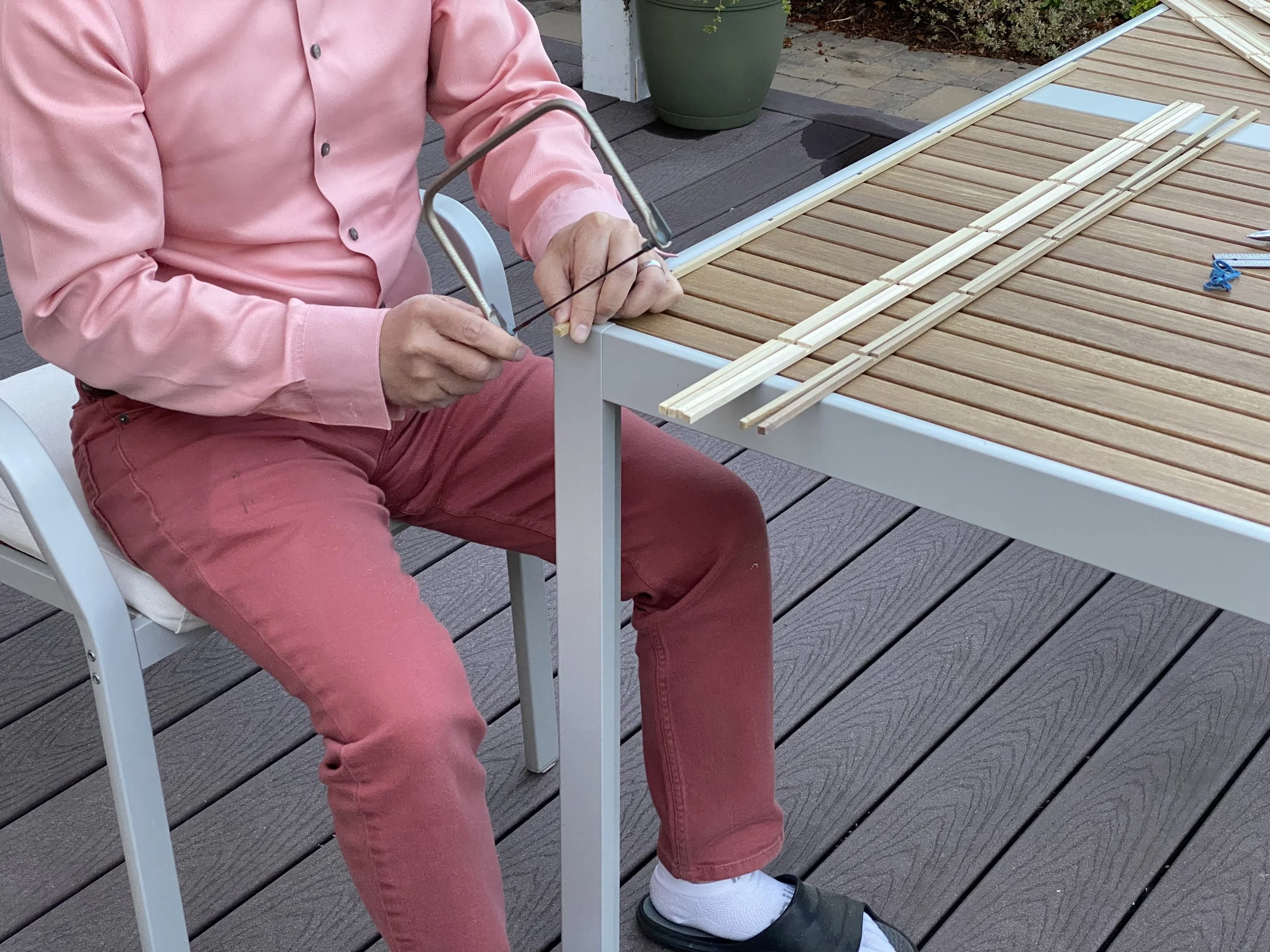 ホームセンターで見つけた材木を切ってます。