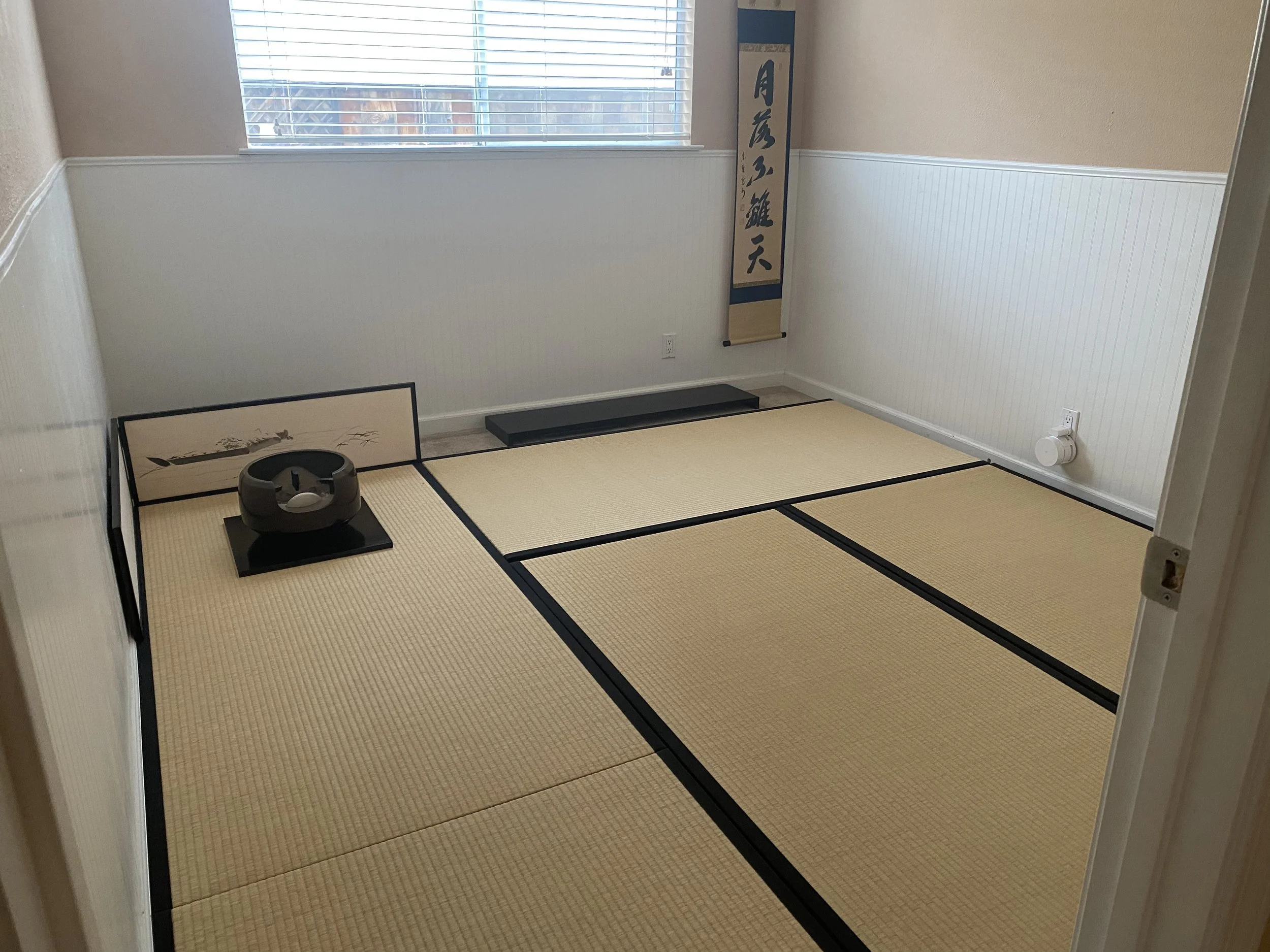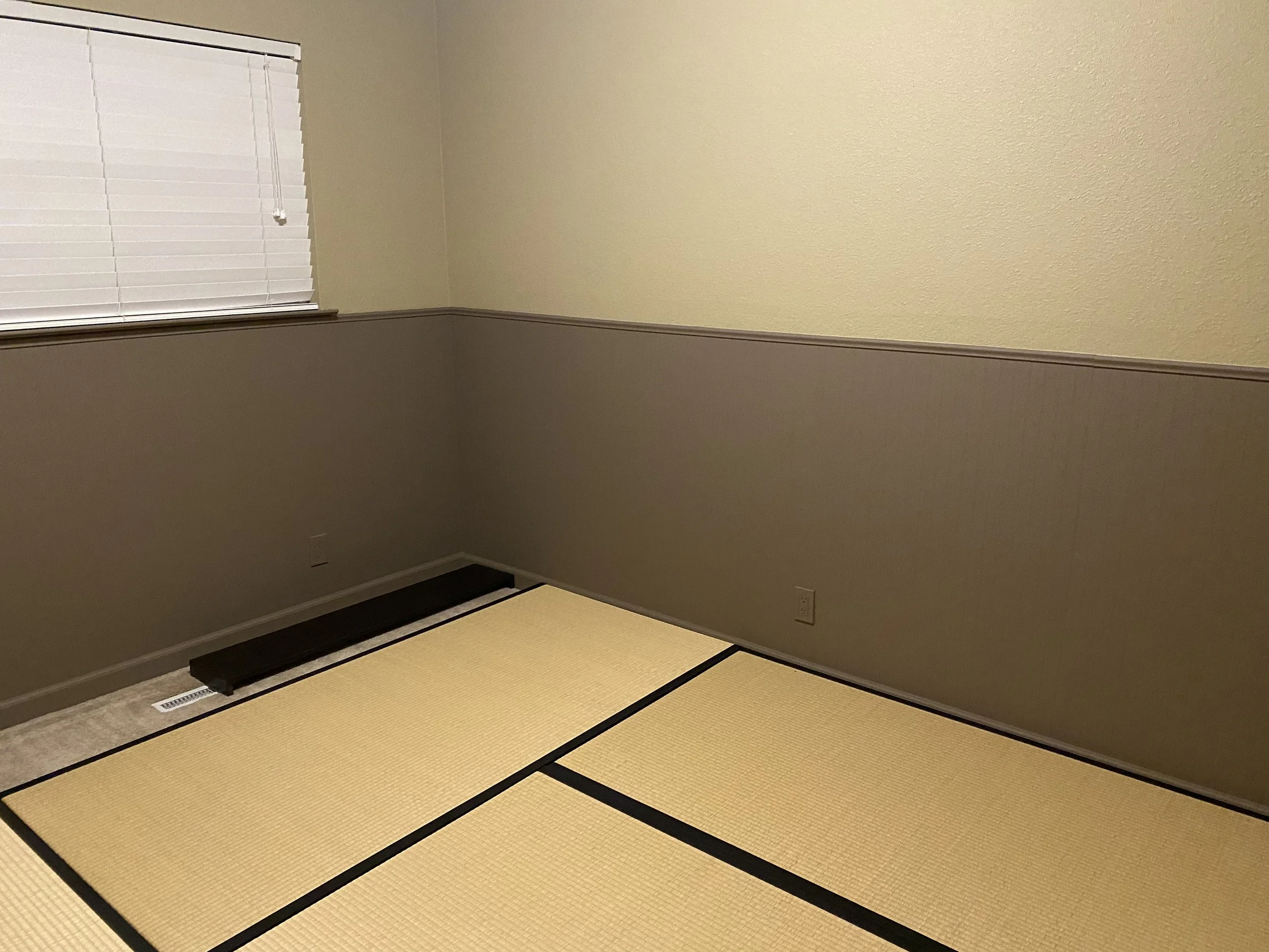 家具がなくなった子供部屋。ベッドの跡がくっきり。ちょうど四畳半分の畳が敷ける大きさだったので、そのまま四畳半の茶室もどきに。