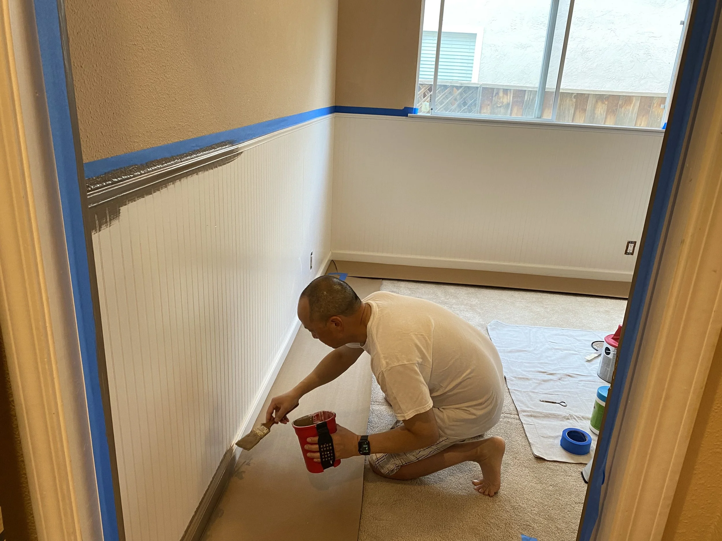 余ったペンキがあるそうなので、それをいただいてそのまま色を借用。(ホームセンターで同じ色を作ってもらいました。)
